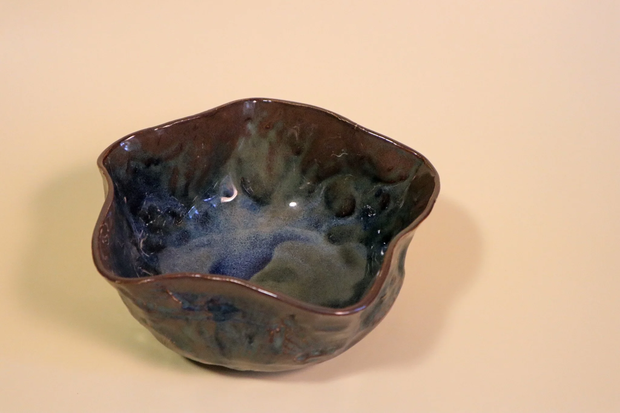 I am fascinated by clay and it’s impressionability, especially when collecting the imprint of another material. Inspired by fossils of seabeds I grew up seeing in the southwestern US and named partially for the floating blue glaze that makes these pieces pop, I created my “Floating Shells” series.